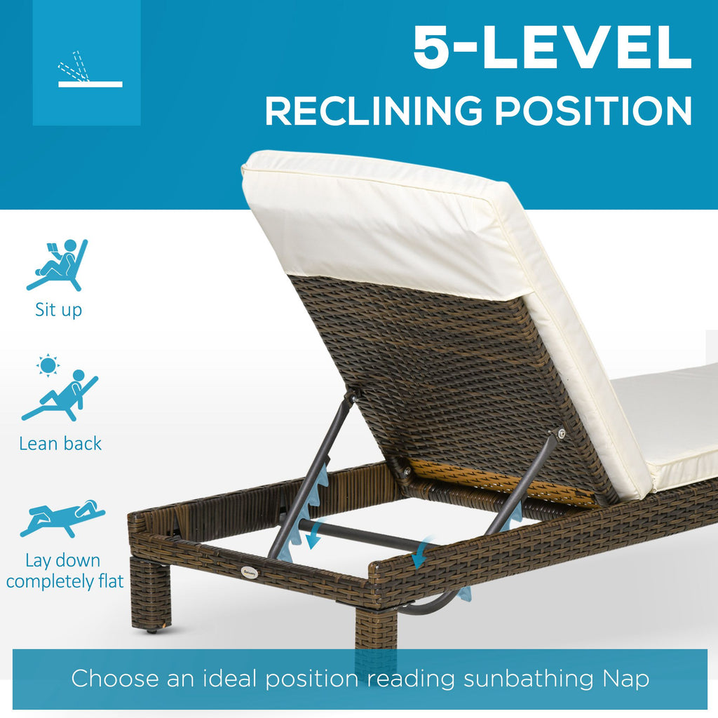 Crea un'oasi di relax in ogni angolo all'aperto con il nostro set di 2 lettini prendisole . Hanno un solido telaio in acciaio, con rivestimento in rattan PE che dona un aspetto elegante e raffinato. Il morbido cuscino ti assicura il massimo della comodità e grazie allo schienale reclinabile su 5 altezze trovi il livello di comfort giusto per le tue esigenze.