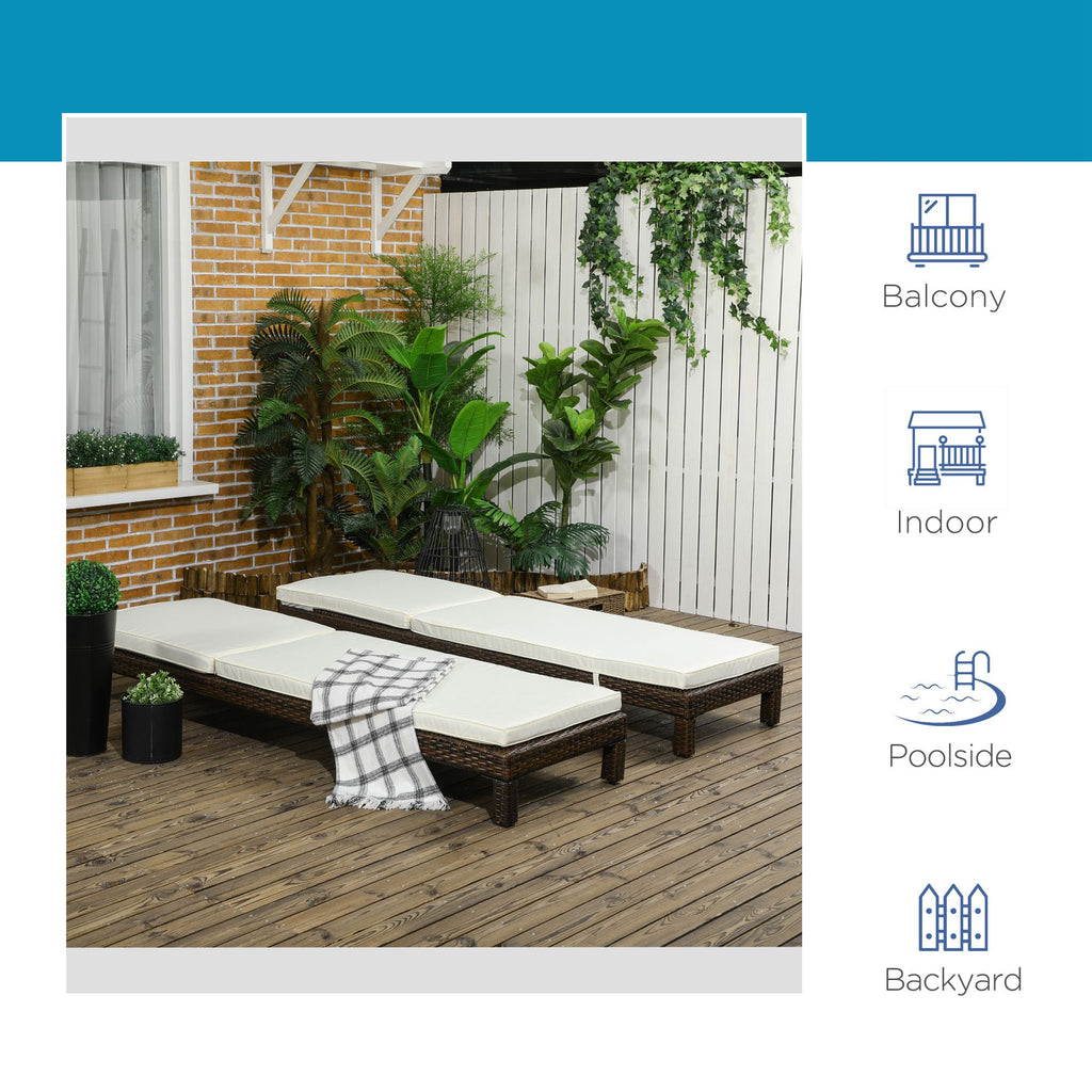 Set 2 Lettini Prendisole 196x60x22 cm in Rattan PE Marrone e Bianco