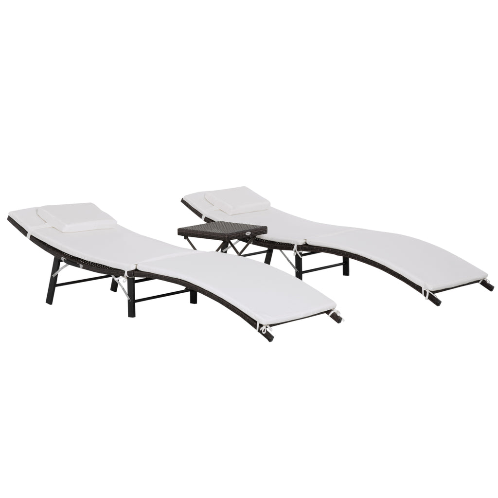 Les chaises longues et la table d'appoint peuvent être pliées pour faciliter le transport et le stockage.