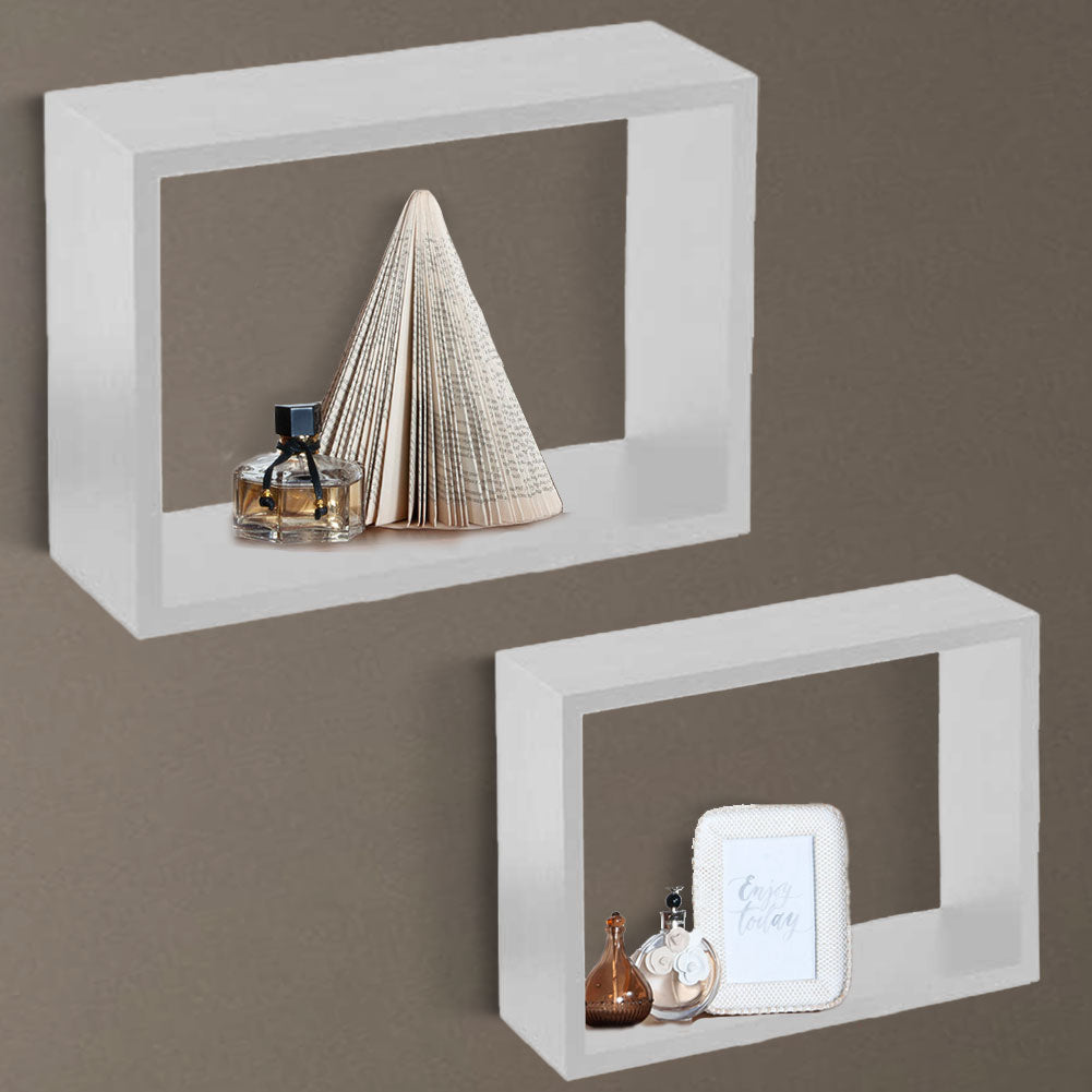 1 x Set 2 Mensole a Muro Moduli da Parete Pensili Rettangolari Supporto Nascosto Portaoggetti in Legno Bianco