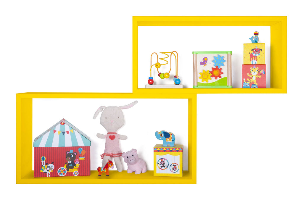 Ensemble de 2 étagères murales cubiques rectangulaires en panneaux de fibres Bislong jaune canari