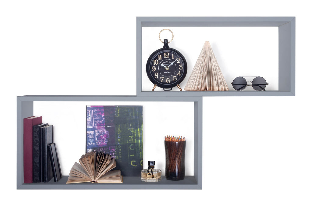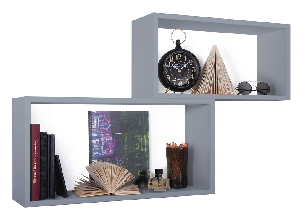 Set 2 Mensole Cubo da Parete Rettangolare in Fibra di Legno Bislungo Grigio