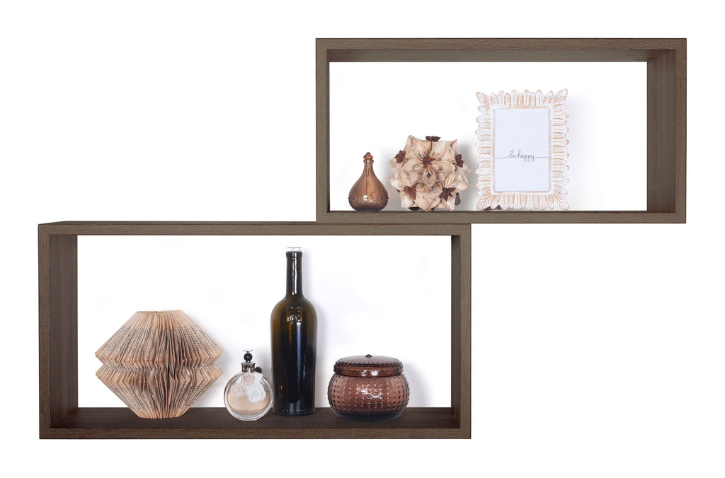 Set 2 Mensole Cubo da Parete Rettangolare in Fibra di Legno Bislungo Noce