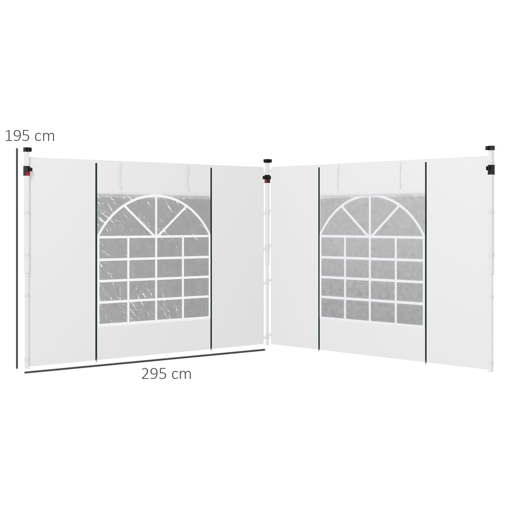 Set 2 Pareti 295x195 cm con Finestre e Tende Avvolgibili per Gazebo 3x3m e 3x6m Bianco