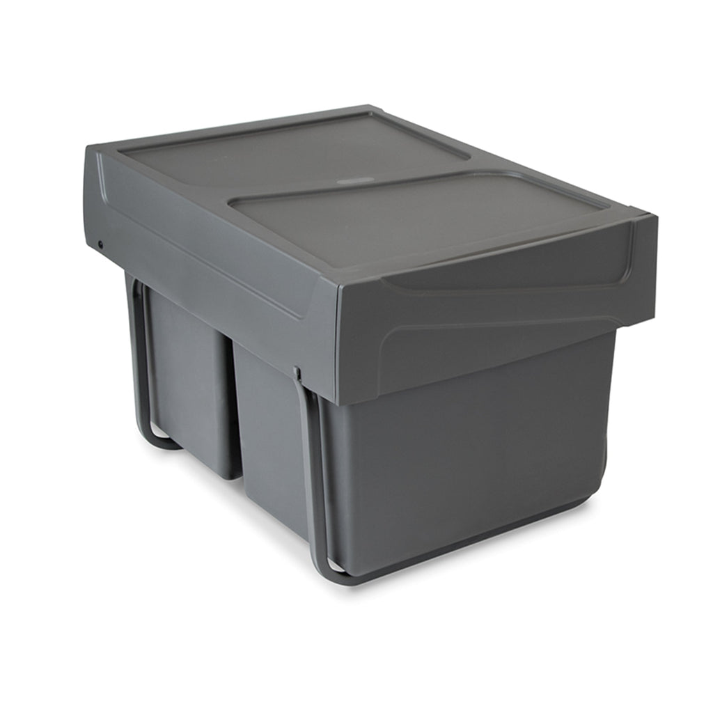 Emuca Lot de 2 Poubelles Différentiées pour Armoire 30 Litres en Acier et Plastique Gris Anthracite