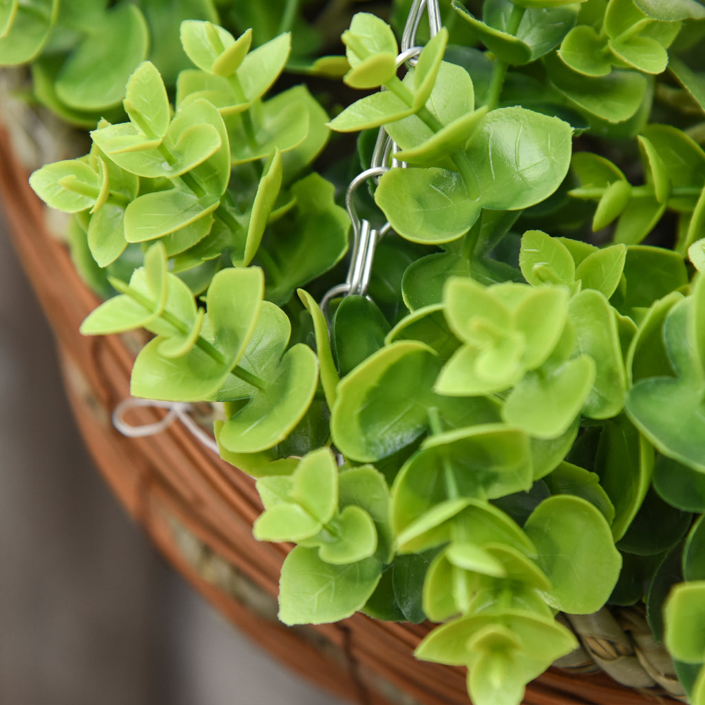 - POT EN OSIER INCLUS : Plantes artificielles livrées prêtes à l'emploi. Le panier de fleurs est tissé avec de l'herbe naturelle et du rotin. CHAÎNE ET CROCHET EN MÉTAL : Le cadre est facile à accrocher et à maintenir en place