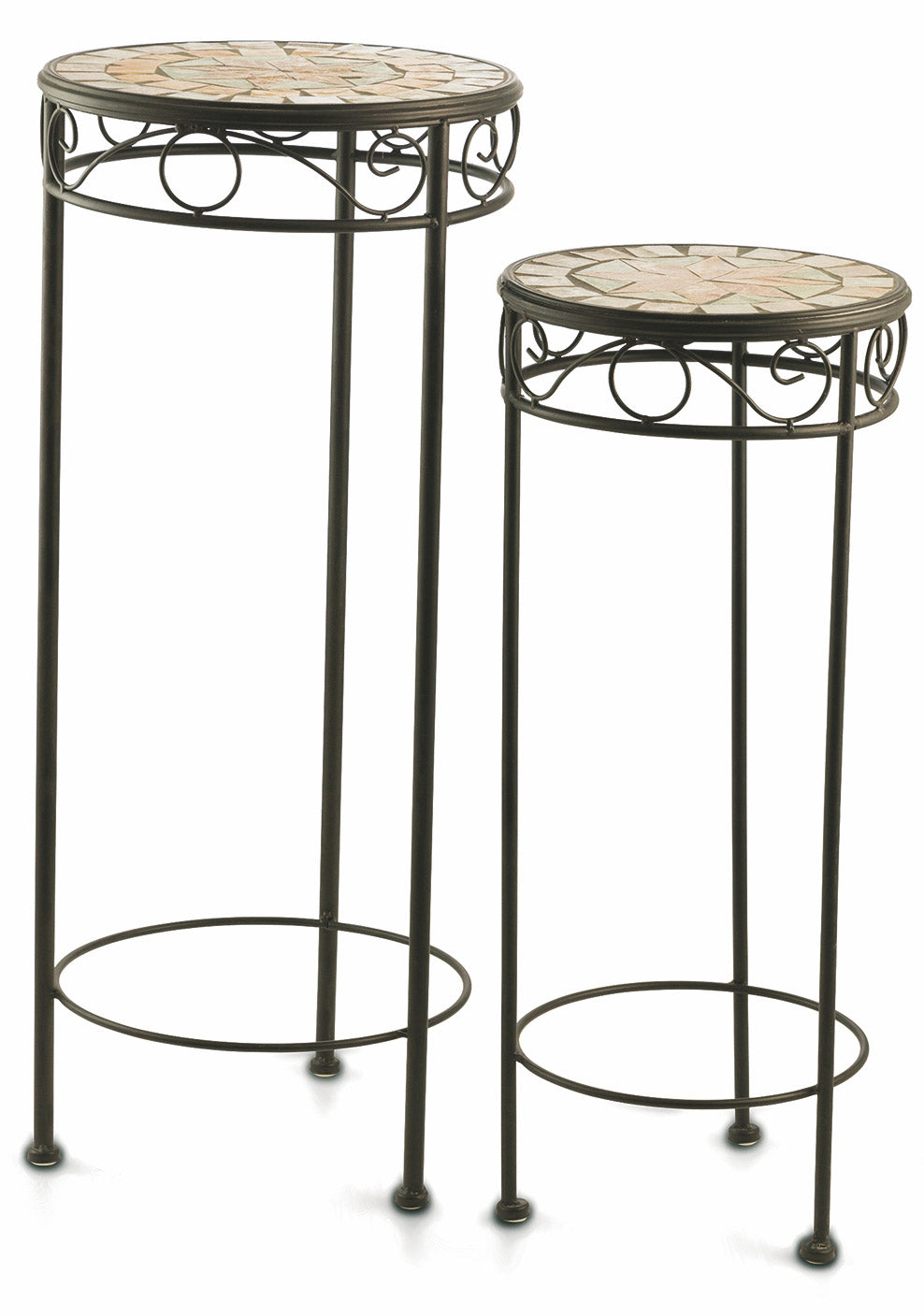 Ensemble de 2 porte-plantes en fer forgé avec mosaïque Soriani Cyprus