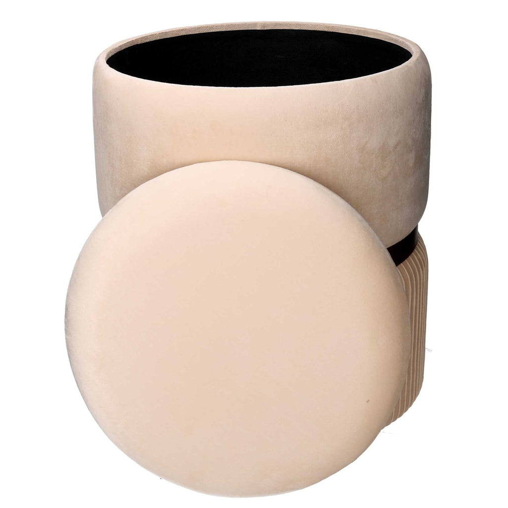Lot de 2 Poufs de Rangement Ø35 cm et Ø39 cm en Tissu Velours Crème
