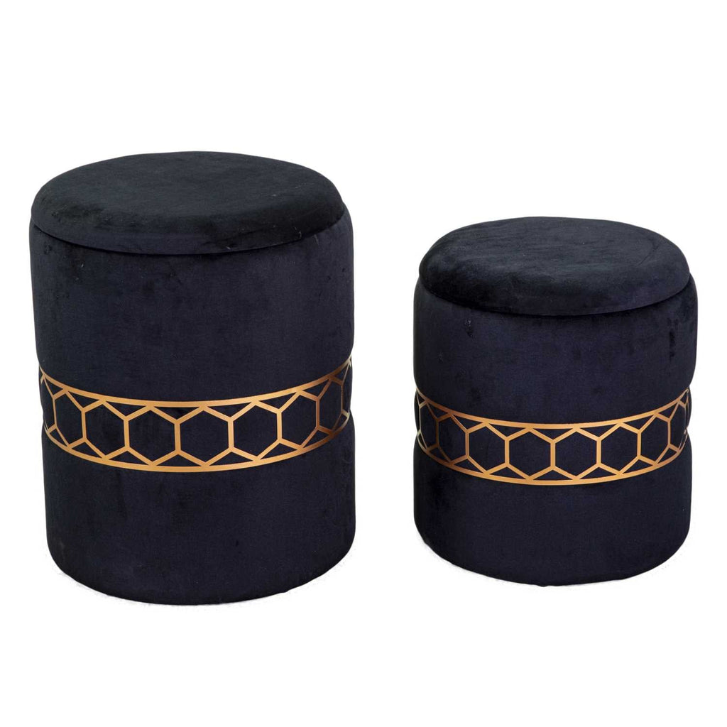 Lot de 2 Poufs de Rangement Ø35 cm et Ø39 cm en Tissu Velours Noir