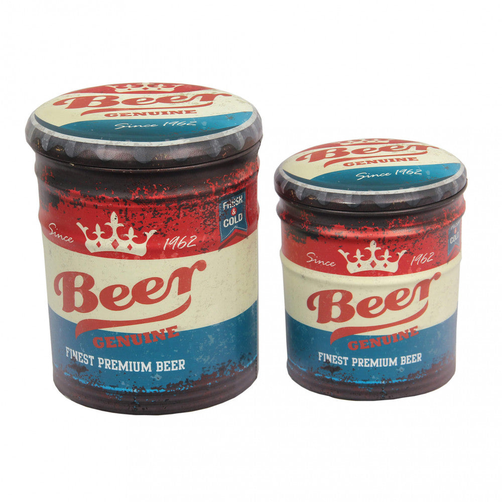 Set 2 Pouf Conteneur Rond en MDF Bière Bleu et Rouge