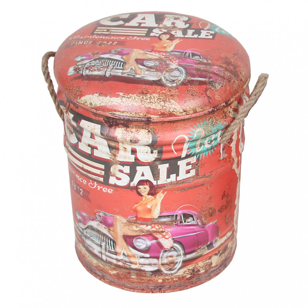 Set 2 Pouf Conteneur Rond en MDF Rouge