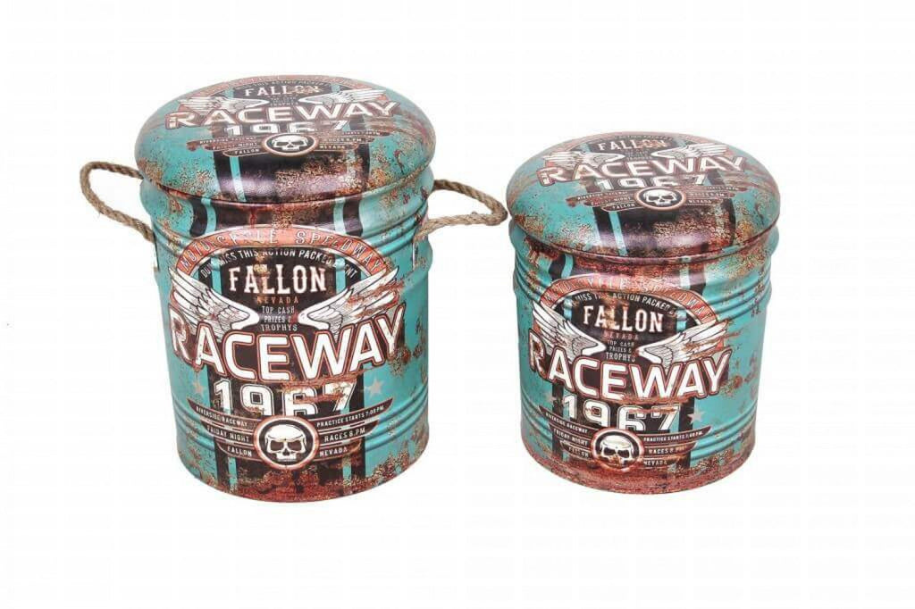 Set 2 Conteneur Pouf Rond en MDF Turquoise