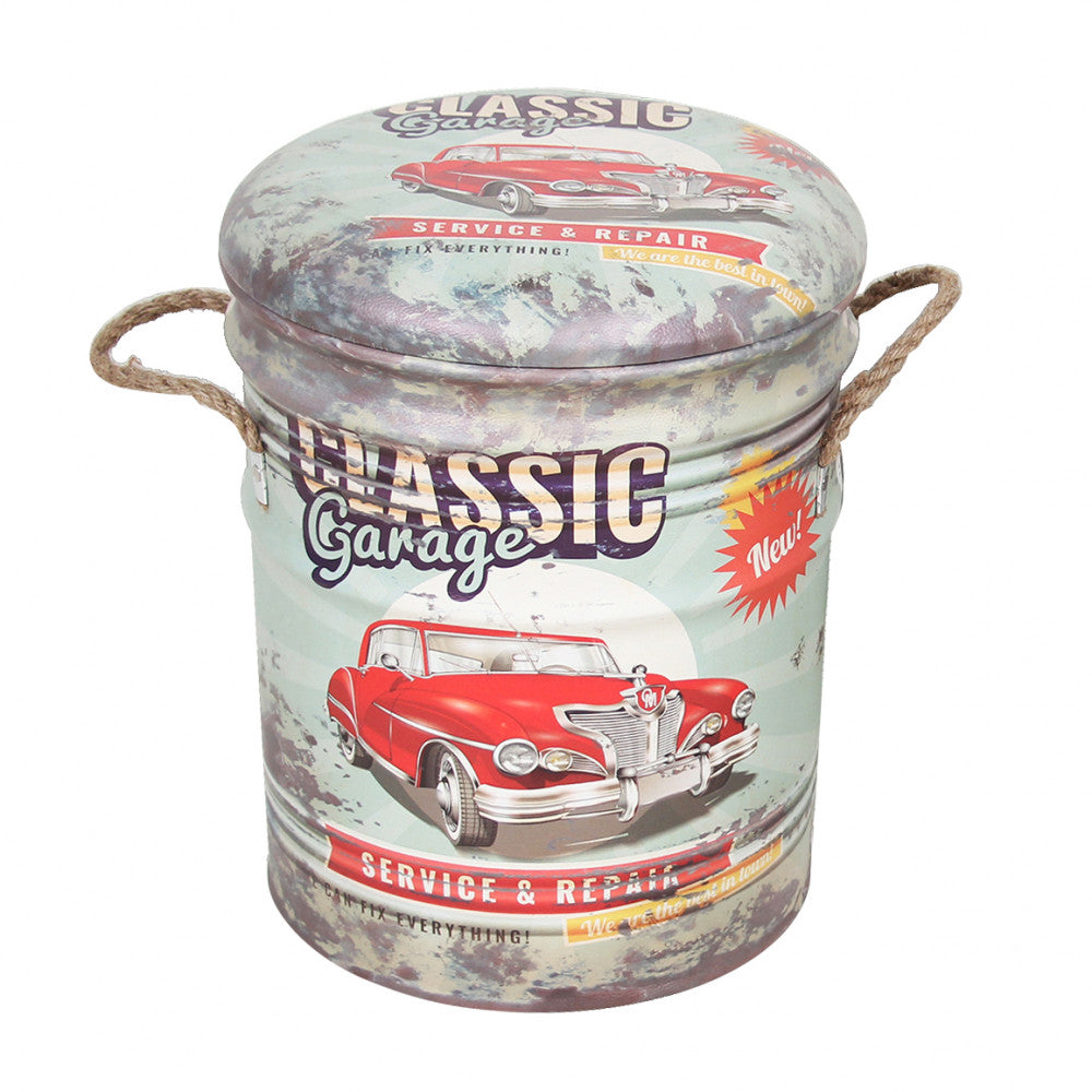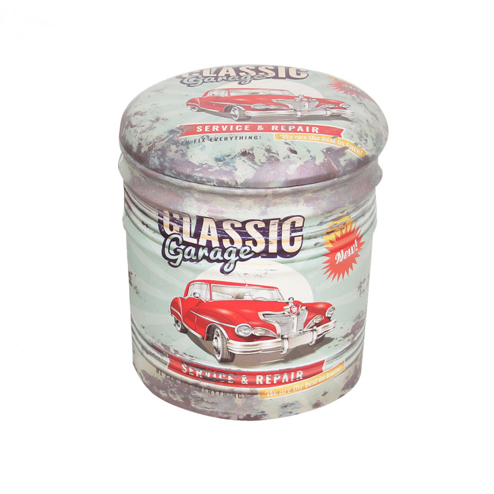Set 2 Pouf Conteneur Rond en MDF Vert Clair/Blanc