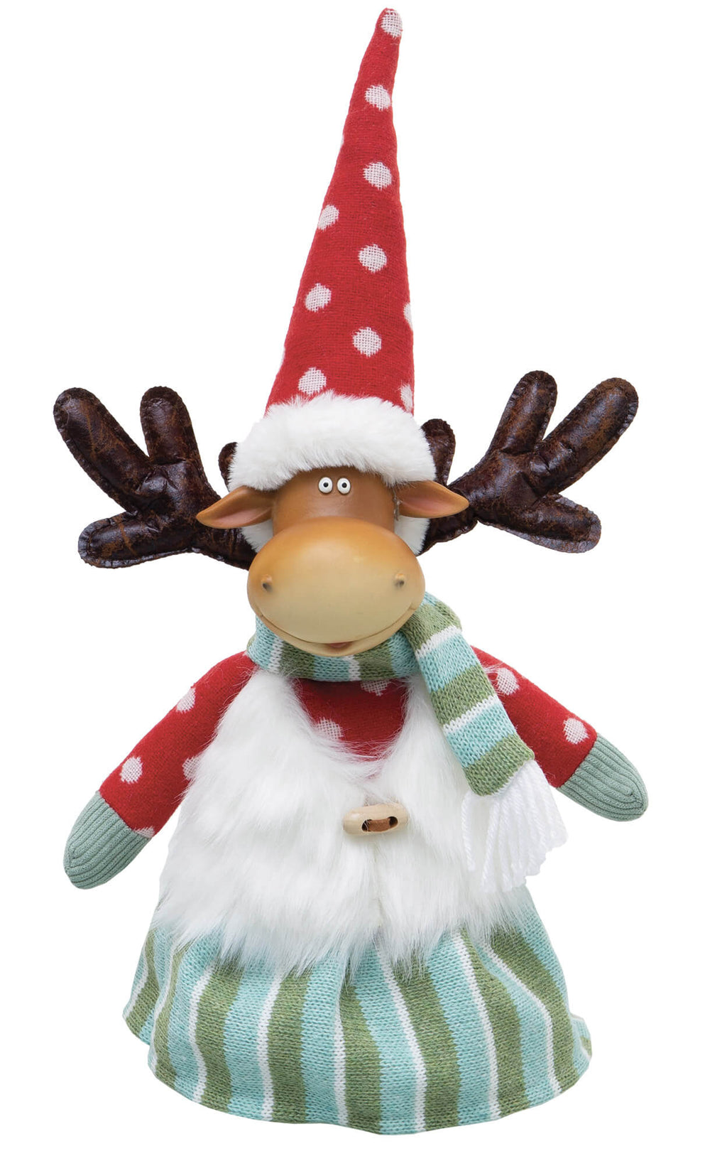 Lot de 2 Marionnettes Renne H44 cm en tissu à pois et rayures