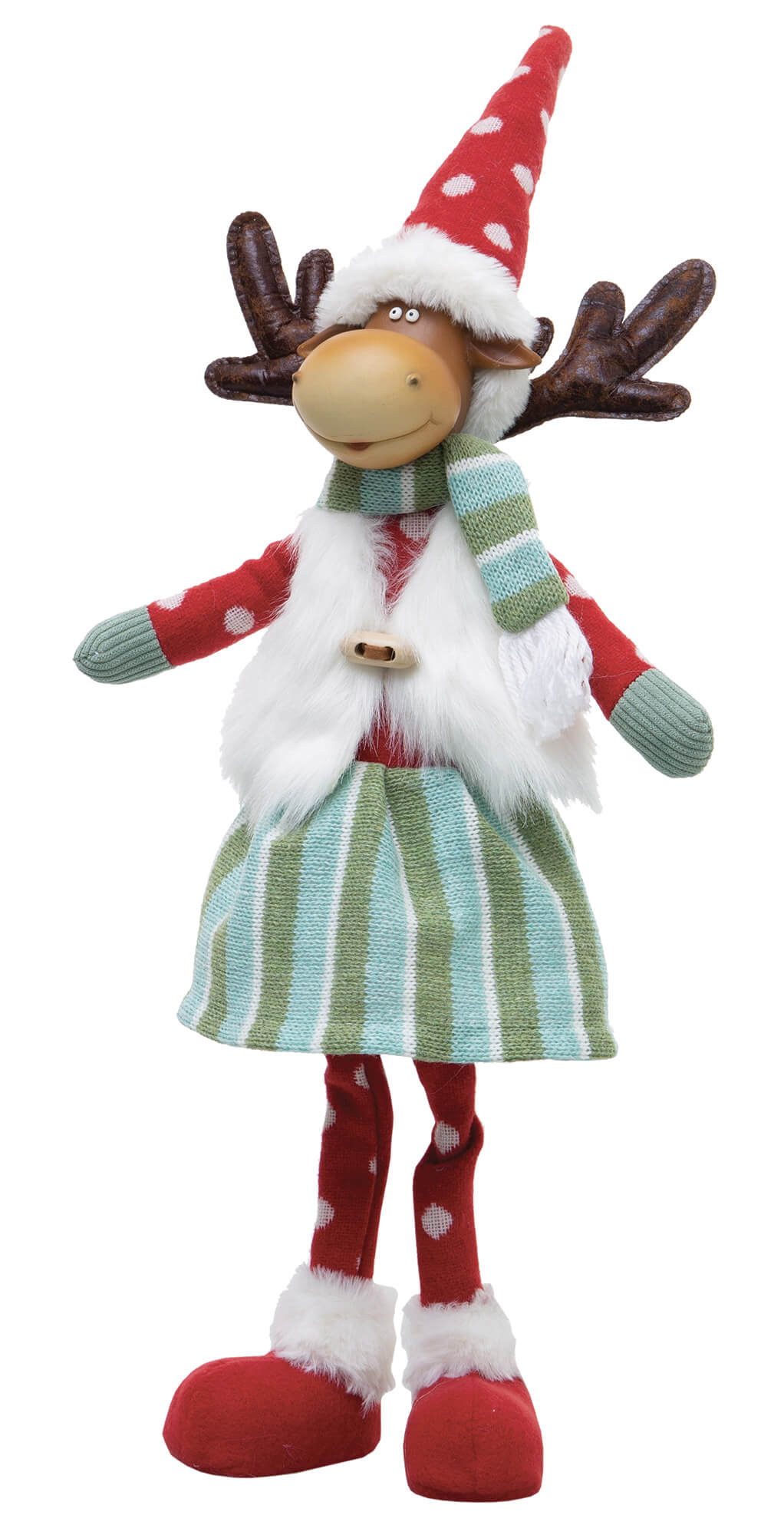 Lot de 2 Marionnettes Renne H58 cm en tissu à pois et rayures