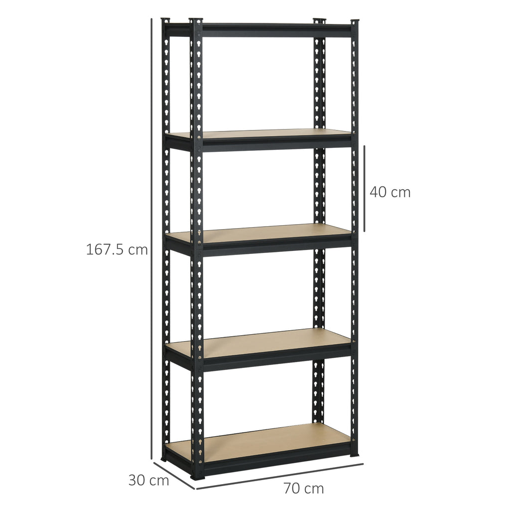 Set 2 Etagères 5 Etagères en MDF 70x30x167,5 cm Structure en Acier Noir