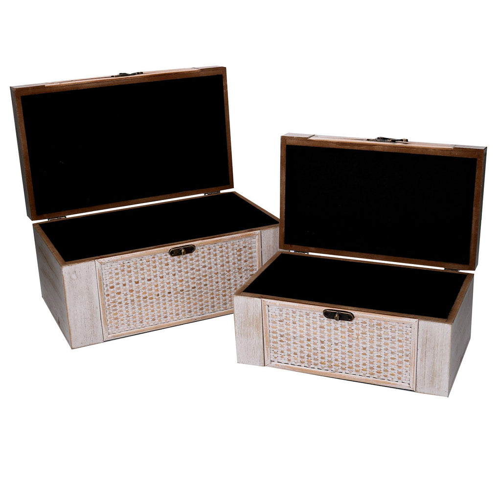 Lot de 2 Boîtes Rectangulaires en Bois Blanchi