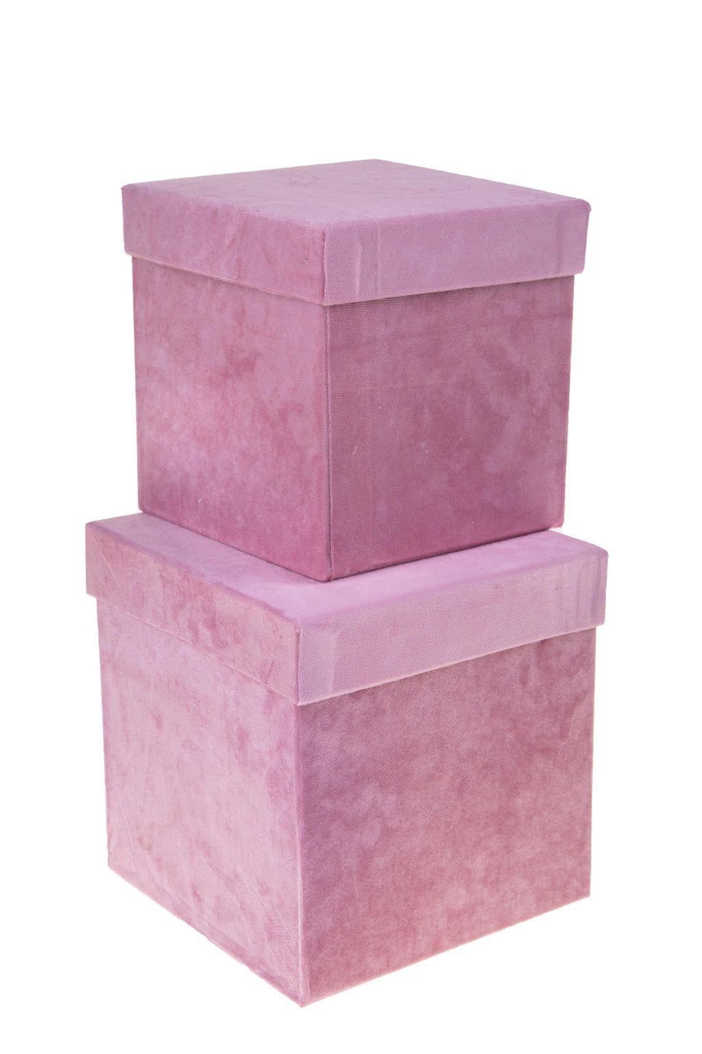 Lot de 2 boîtes carrées en velours. Hauteur 26,5 cm