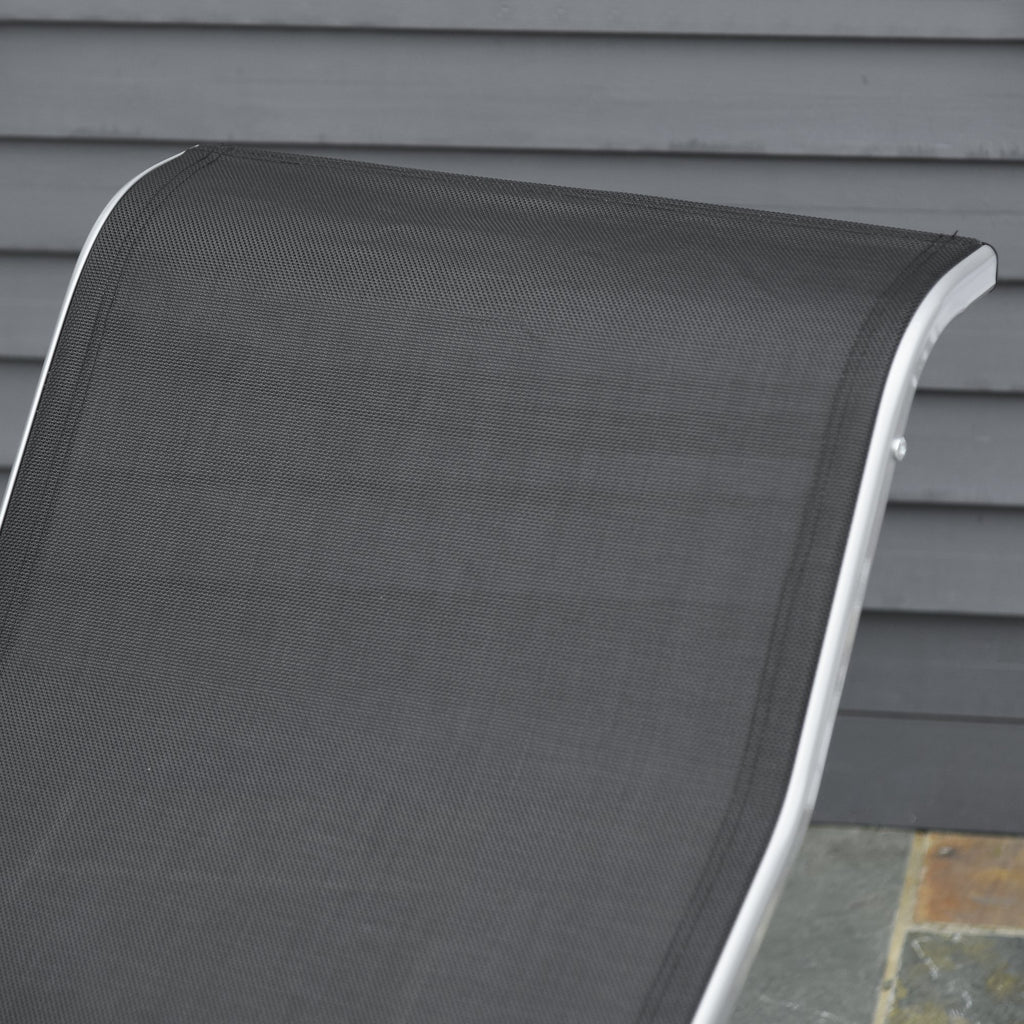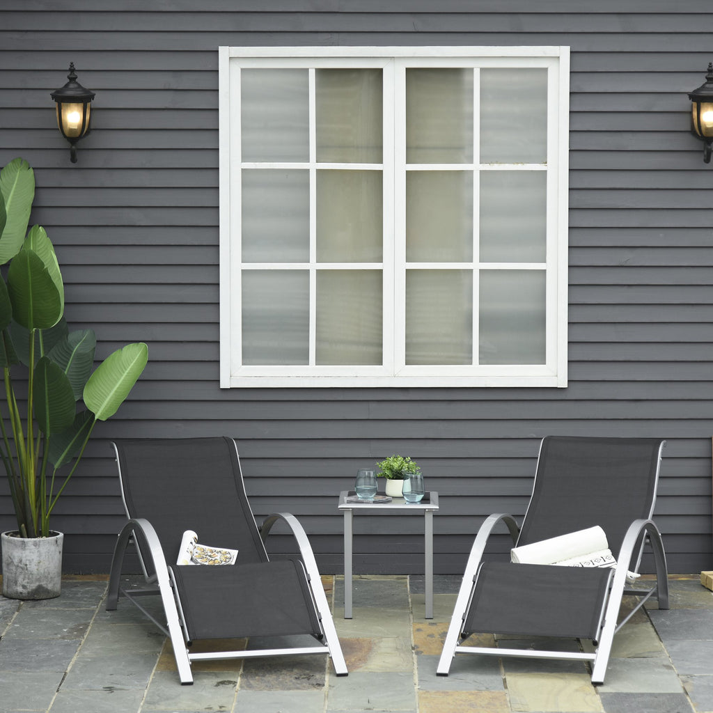 Lot de 2 transats et table de jardin en métal et tissu noir