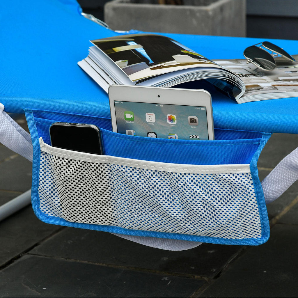 Le lot de 2 transats pliants vous permet de profiter de votre temps libre dans le jardin, sur la plage et partout où vous le souhaitez ! Le dossier réglable avec trou pour le visage vous permet de trouver la position qui vous convient. La poche latérale pour objets et le coussin amovible vous offrent praticité et confort. Avec leur design pliable, ces chaises longues prennent peu de place et sont faciles à transporter, grâce également à la poignée pratique.