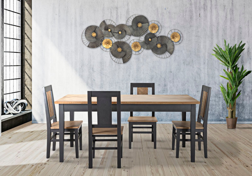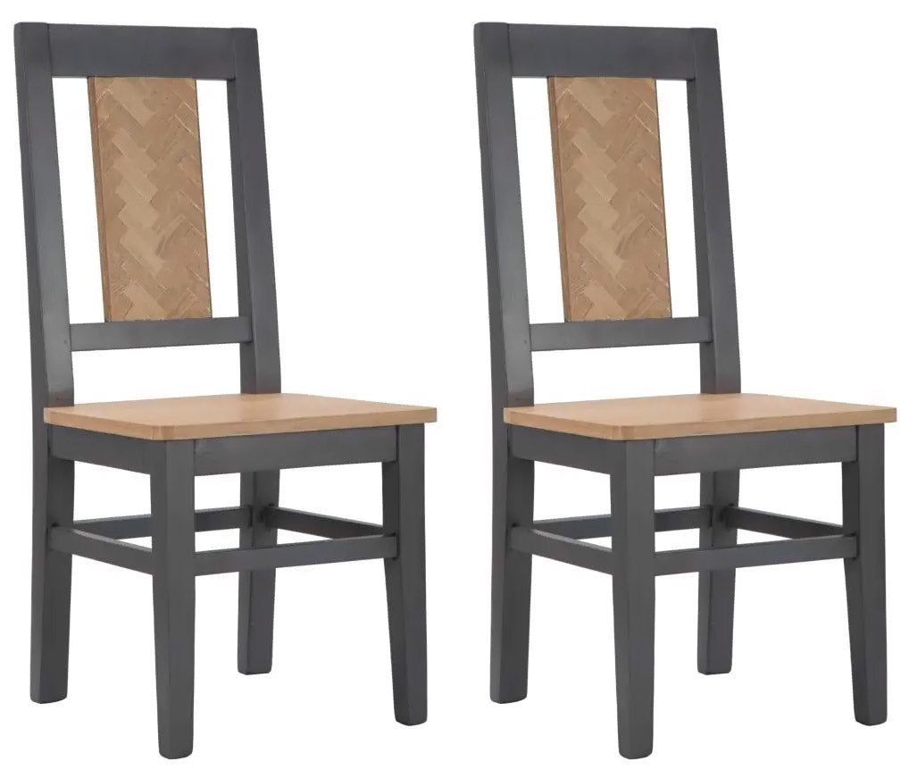Lot de 2 chaises en bois bicolore. Le design simple et carré combiné à la finition particulière du dossier allient parfaitement élégance et raffinement.