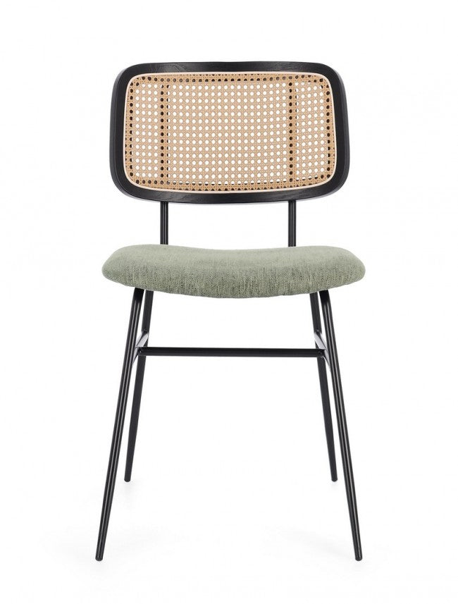 Structure en acier avec revêtement en poudre époxy pour une plus grande résistance et durabilité. Assise en contreplaqué recouvert de 100% polyester pour un confort optimal. Dossier en contreplaqué avec finition en fibre synthétique effet rotin pour un design élégant. Nécessite un assemblage. Tissu de haute qualité.Lot de 2 chaises Sienna 45x59x80,5 cm en tissu vert