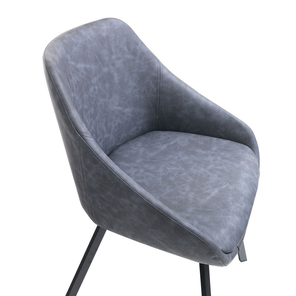 - assise et dossier rembourrés et recouverts de simili cuir gris mélangé/bleu