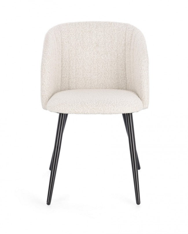 Structure en contreplaqué, pieds en acier peint, rembourrage en mousse polyuréthane, revêtement polyester/acrylique. Les pieds nécessitent un assemblage.Lot de 2 chaises Queen 53x57x81,5 cm en Bouclé Ivoire