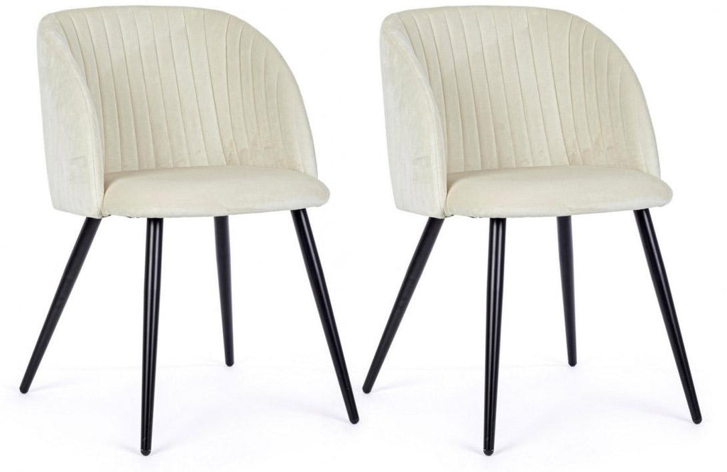 Lot de 2 Chaises 53x57x81,5 cm en Polyester Effet Velours Blanc