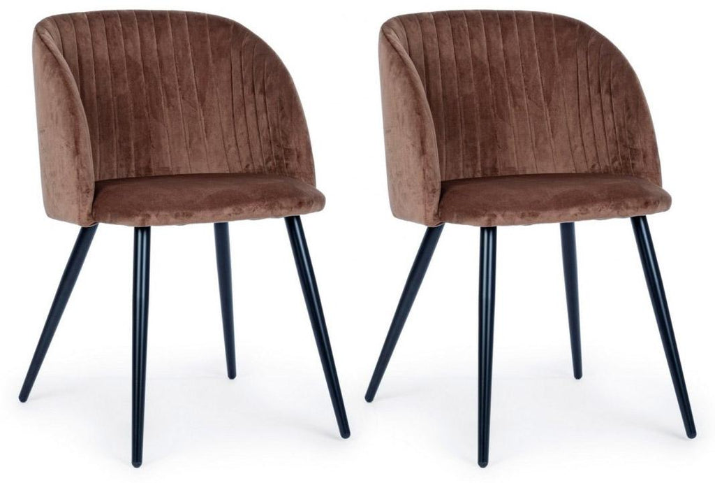 Lot de 2 Chaises 53x57x81,5 cm en Polyester Effet Velours Rouille