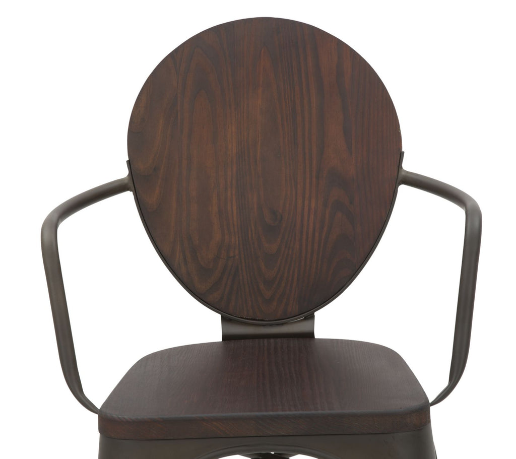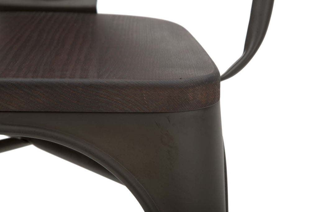 Chaise en métal et bois. Un style industriel sobre capable de se fondre parfaitement avec tout type de mobilier. Le bois et le fer créent un contraste de matières très actuel.