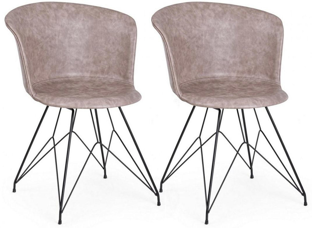 Lot de 2 Chaises 56x54x76 cm en Simili Cuir Noir et Beige