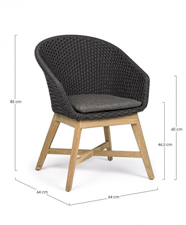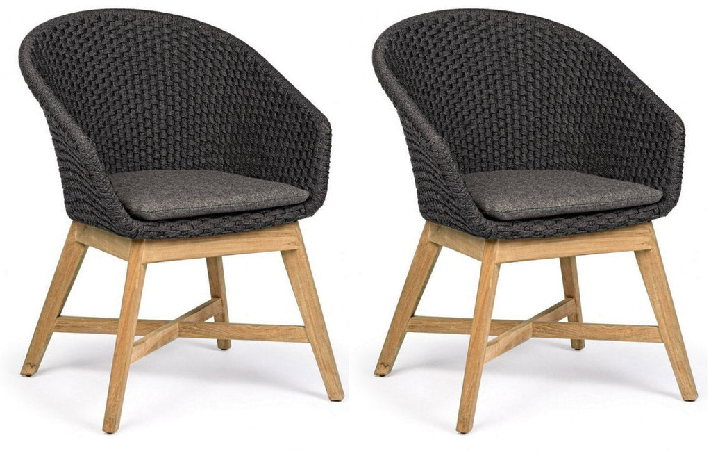 Set 2 Sedie 64x64x85h cm con Braccioli e Cuscini Coachella Antracite