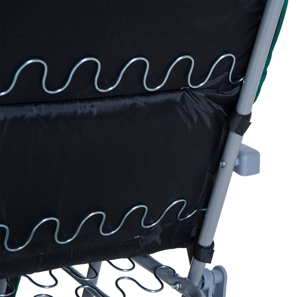 Deux chaises longues pliantes avec un joli design en blanc et vert