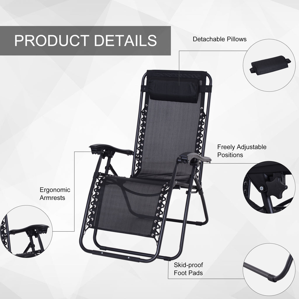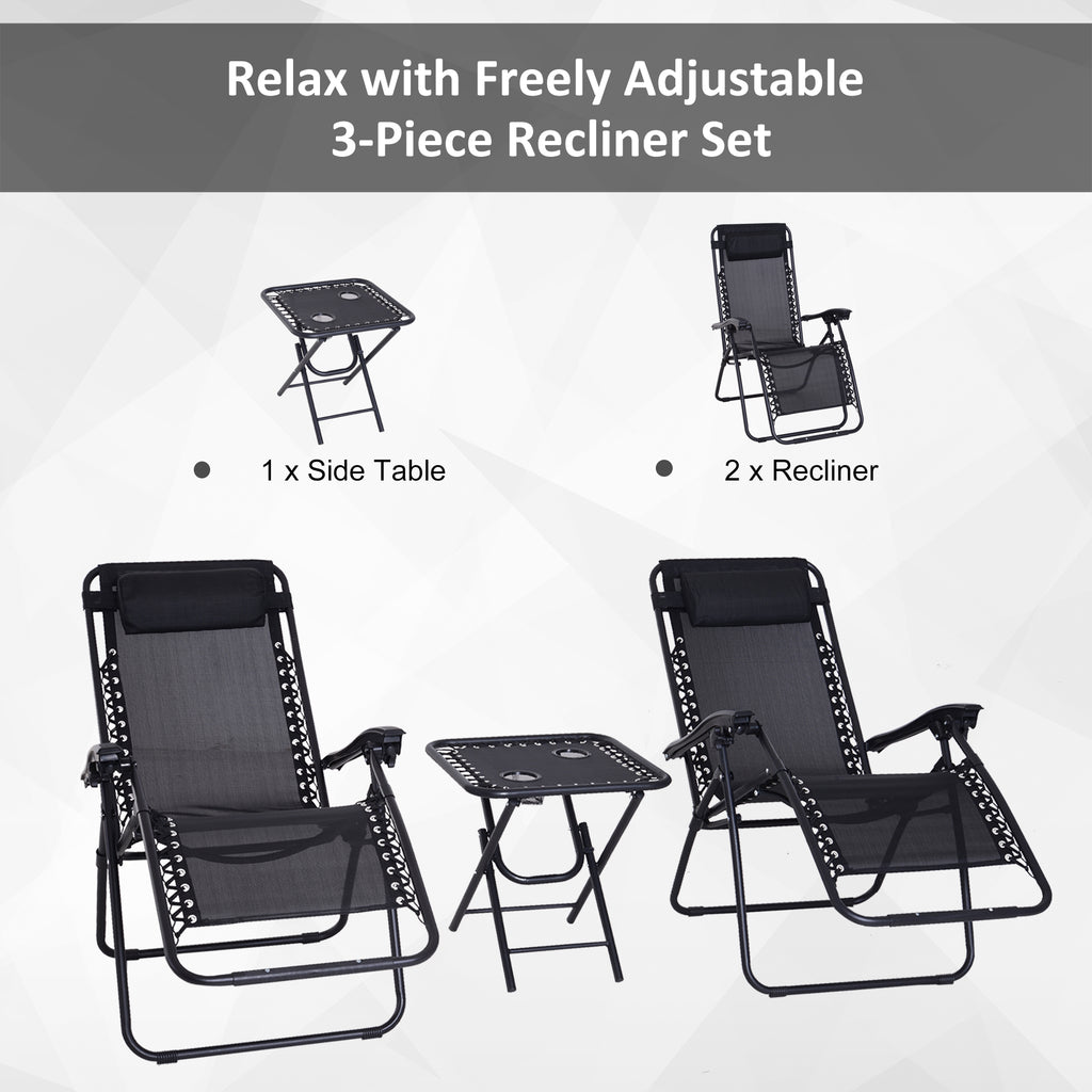 Lot de 2 Chaises Longues et Table de Jardin Pliantes Ajustables Tissu Textilène Noir