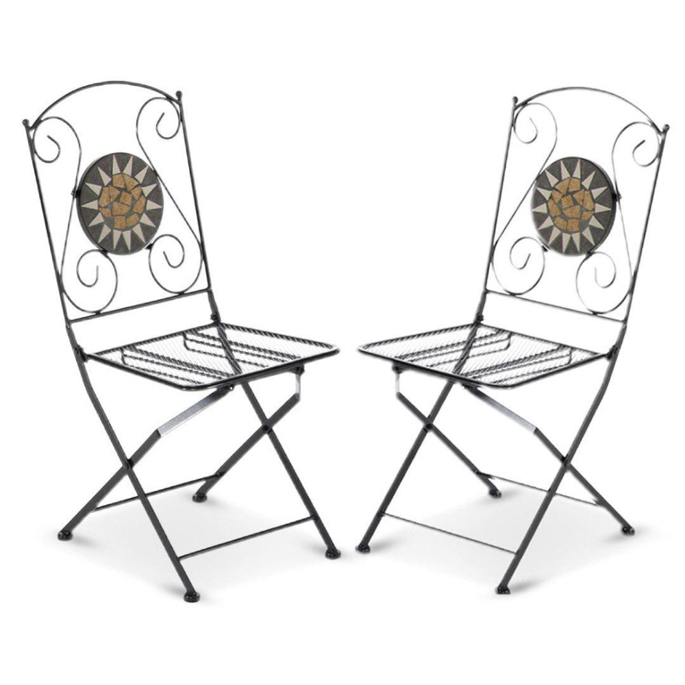 Lot de 2 chaises de jardin pliantes en fer avec mosaïque noire