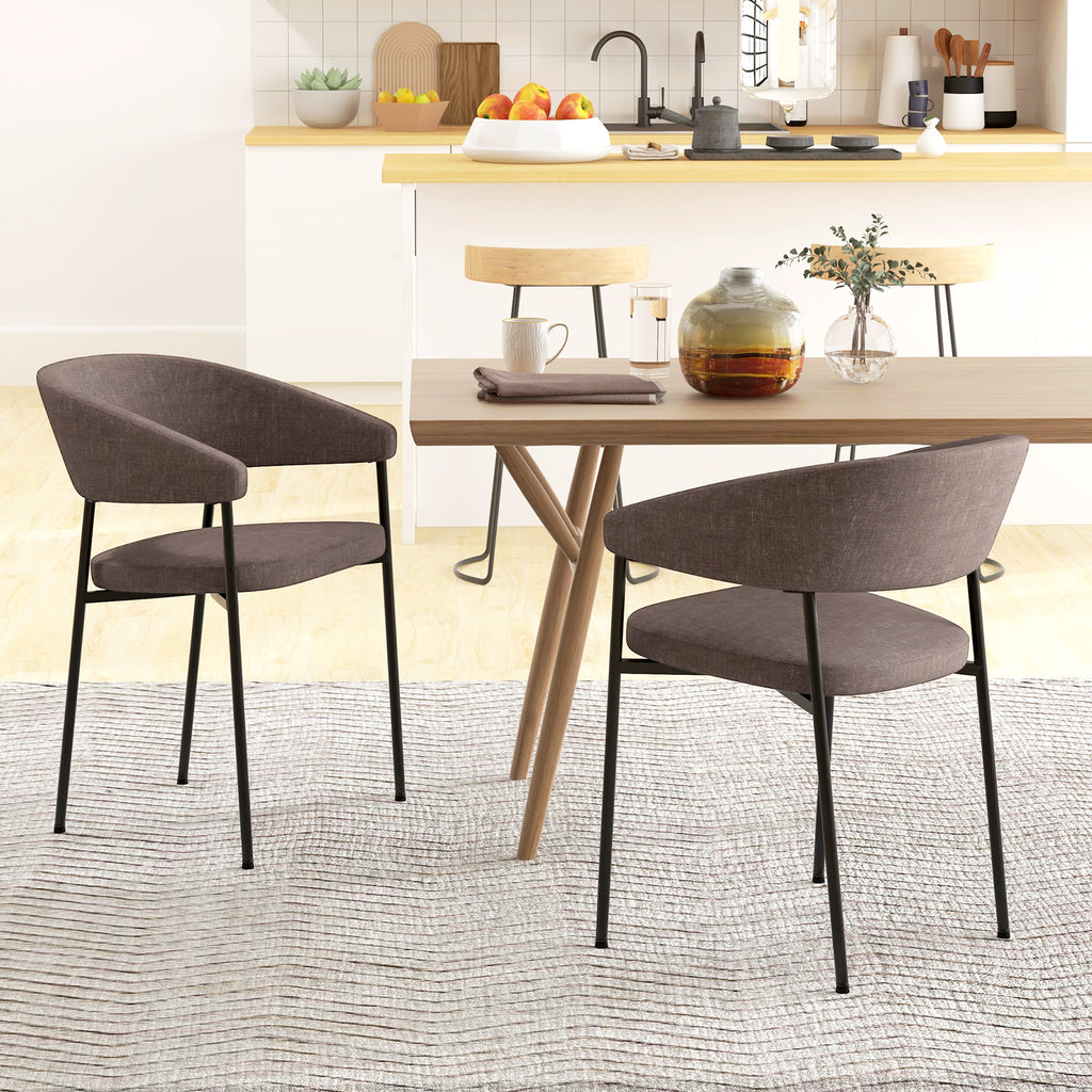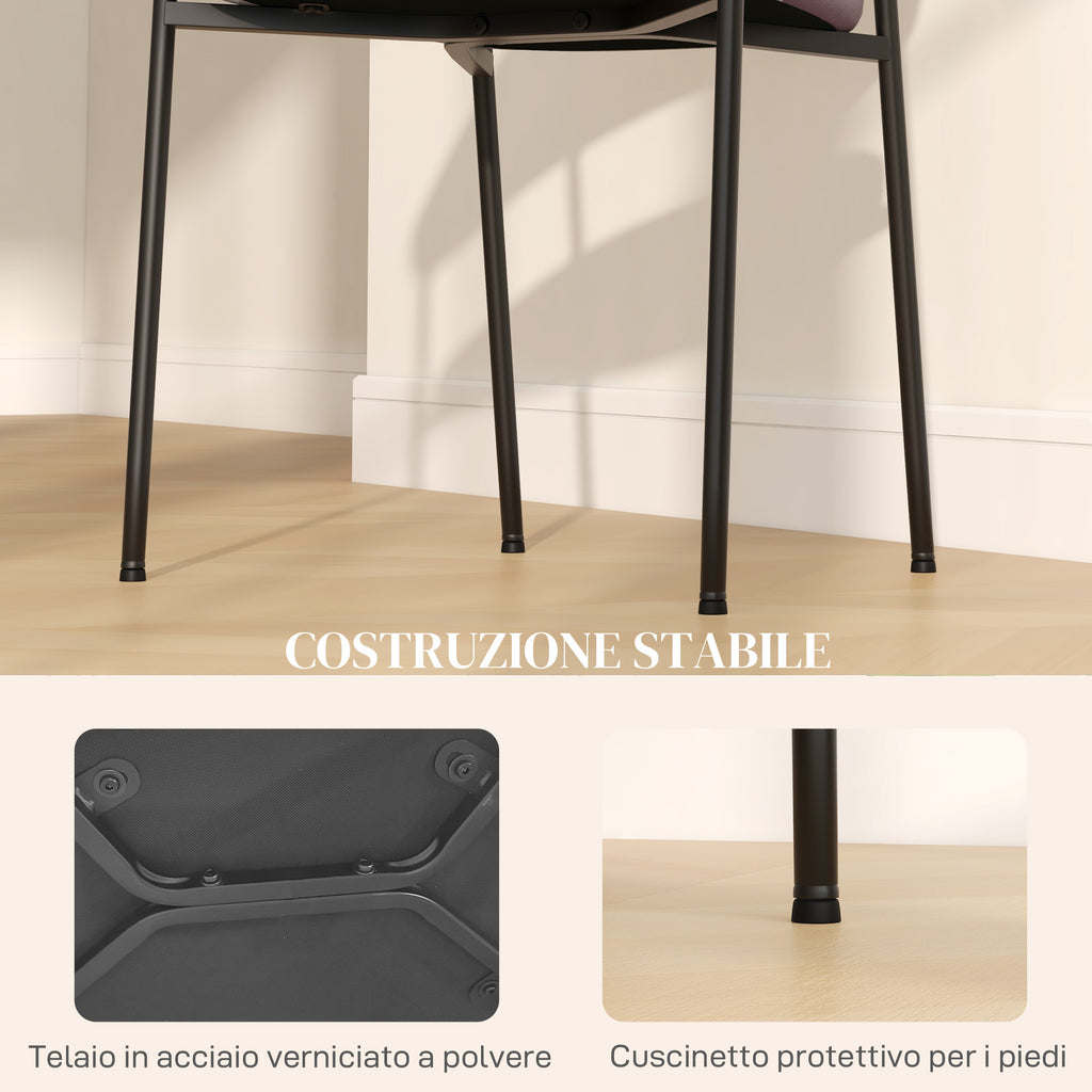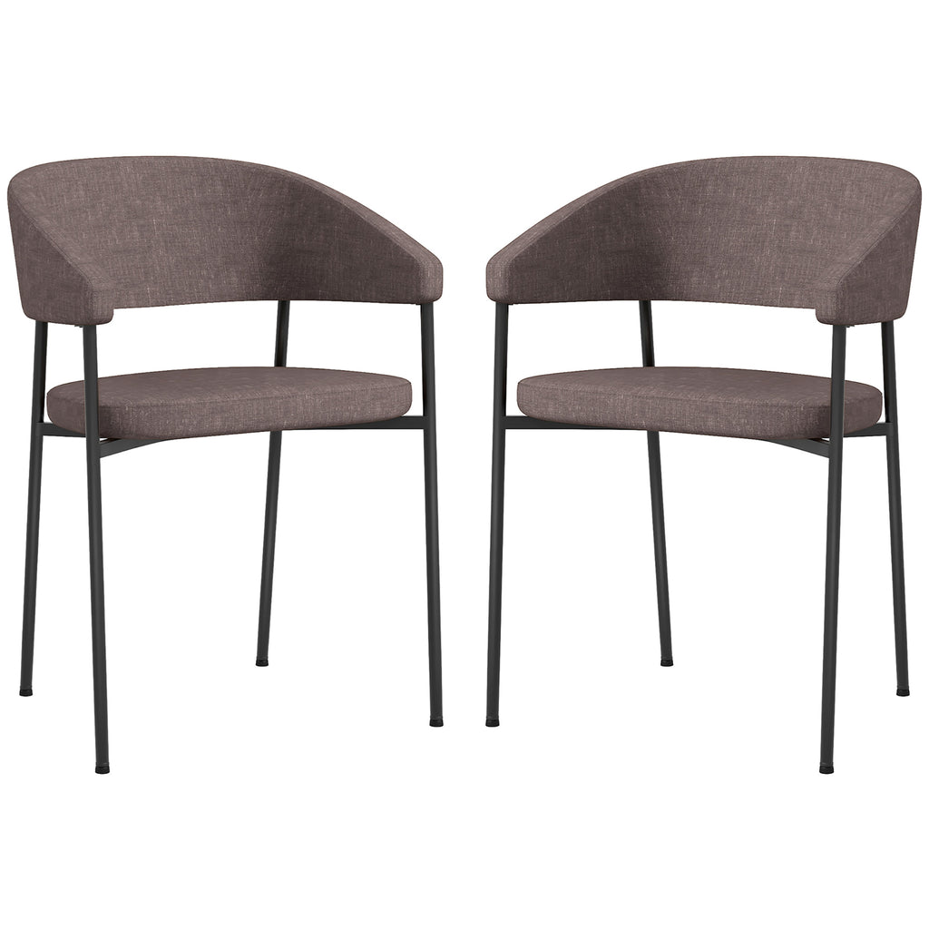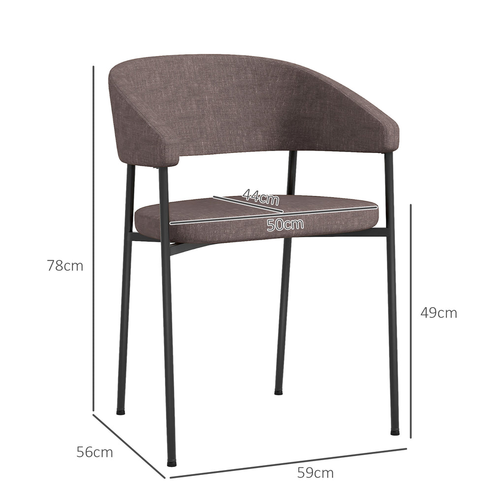 Set 2 Sedie da Pranzo Imbottite e Monoblocco 59x56x78 cm in Tessuto Effetto Lino e Acciaio Marrone