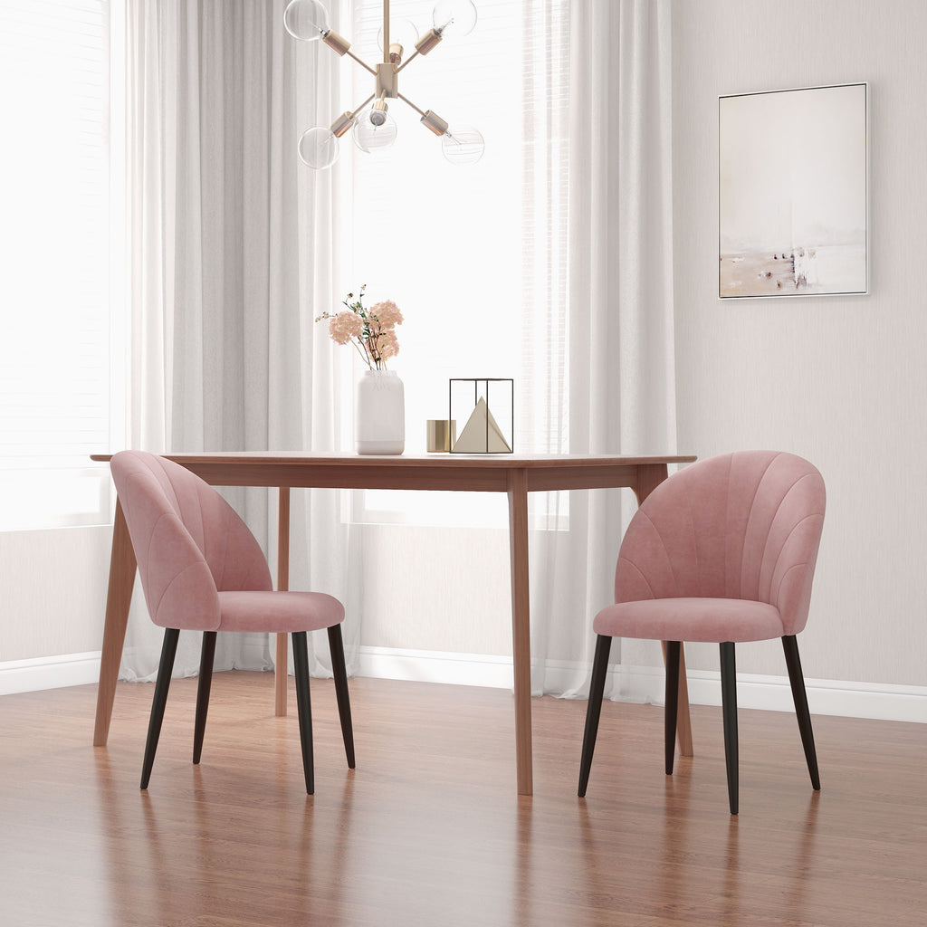 Set 2 Sedie da Pranzo Imbottite Stile Nordico 52x54x79 cm in Metallo e Velluto Rosa