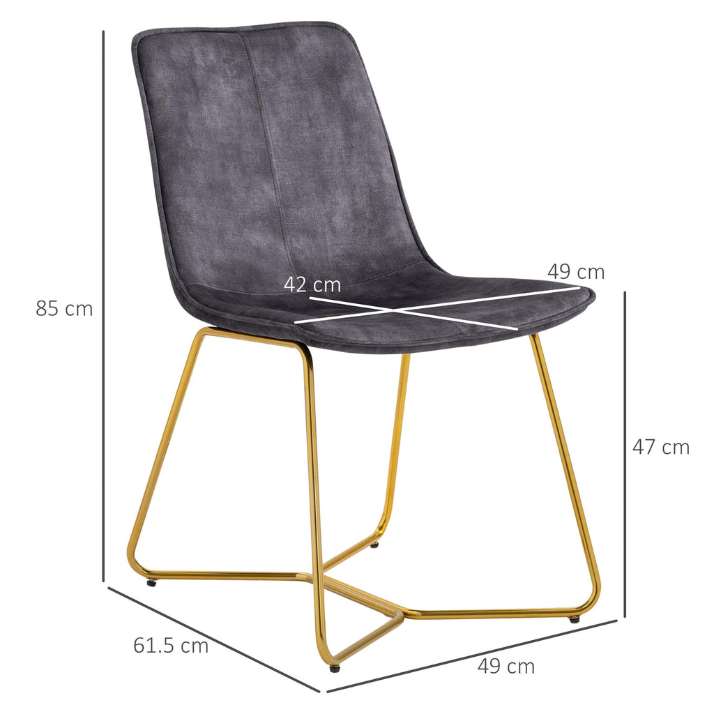 Lot de 2 Chaises de Salon 49x61,5x85 cm en Tissu Effet Velours Gris