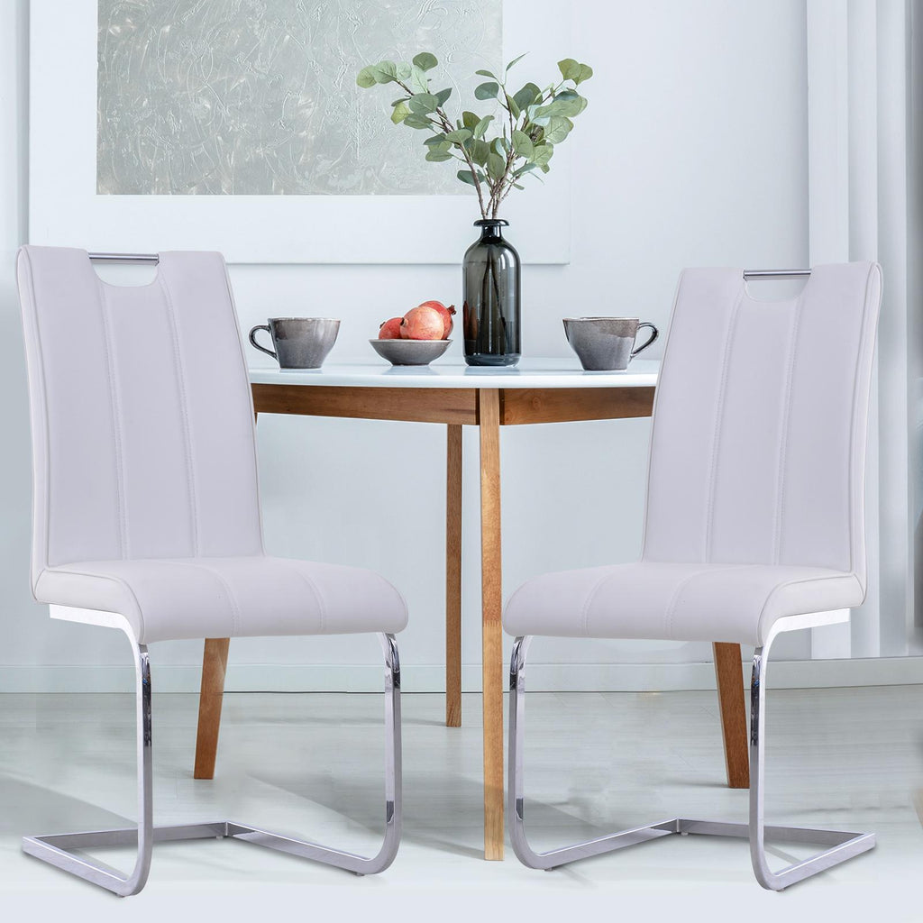 Lot de 2 chaises design moderne en métal avec revêtement en cuir PU blanc