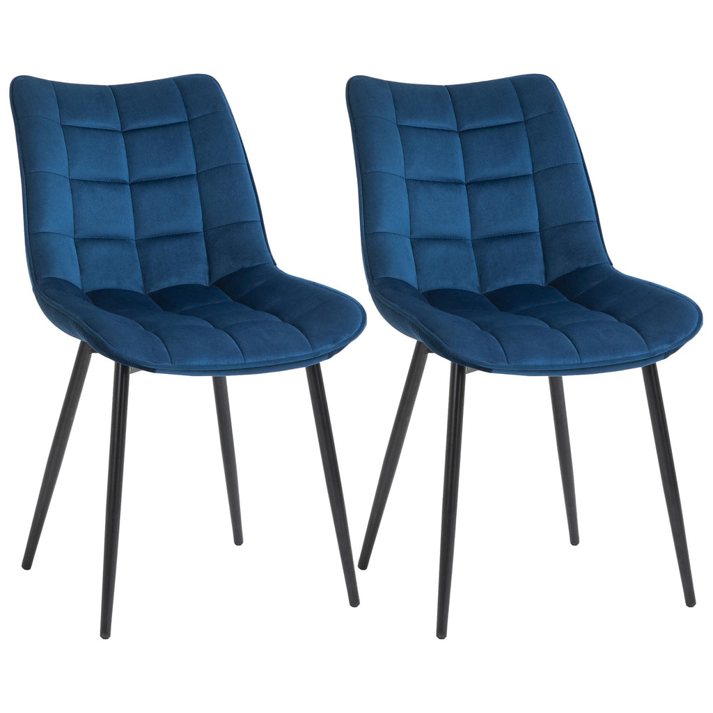 Lot de 2 Chaises Rembourrées 46x58,5x85,5 cm en Tissu Velours Bleu