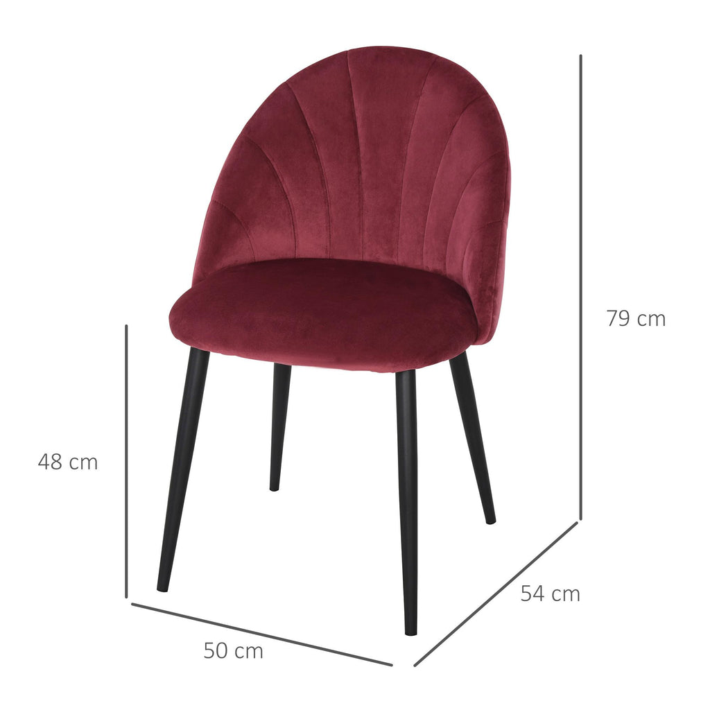 Lot de 2 Chaises Rembourrées 50x54x79 cm en Velours Bordeaux