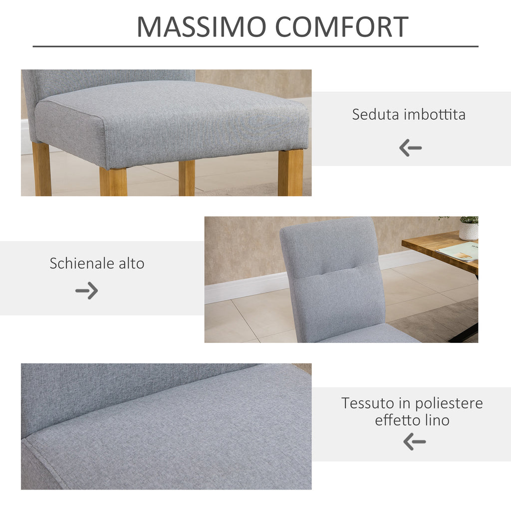 Lot de 2 Chaises Rembourrées 50x62x96 cm en Tissu Effet Lin Gris Clair