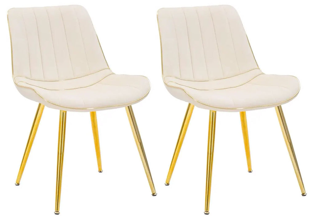 Lot de 2 Chaises Rembourrées 51x59x79 cm en Polyester Paris Crème et Or