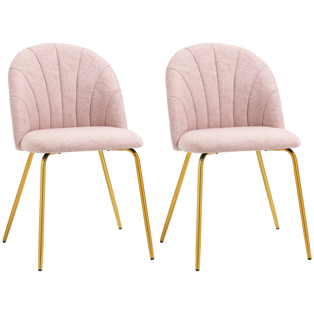 Lot de 2 chaises rembourrées 55,5x59x81 cm en tissu effet lin rose et doré