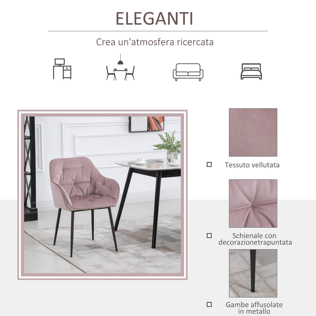 Set 2 Chaises Rembourrées 59,5x55,5x83,5 cm en Velours Rose