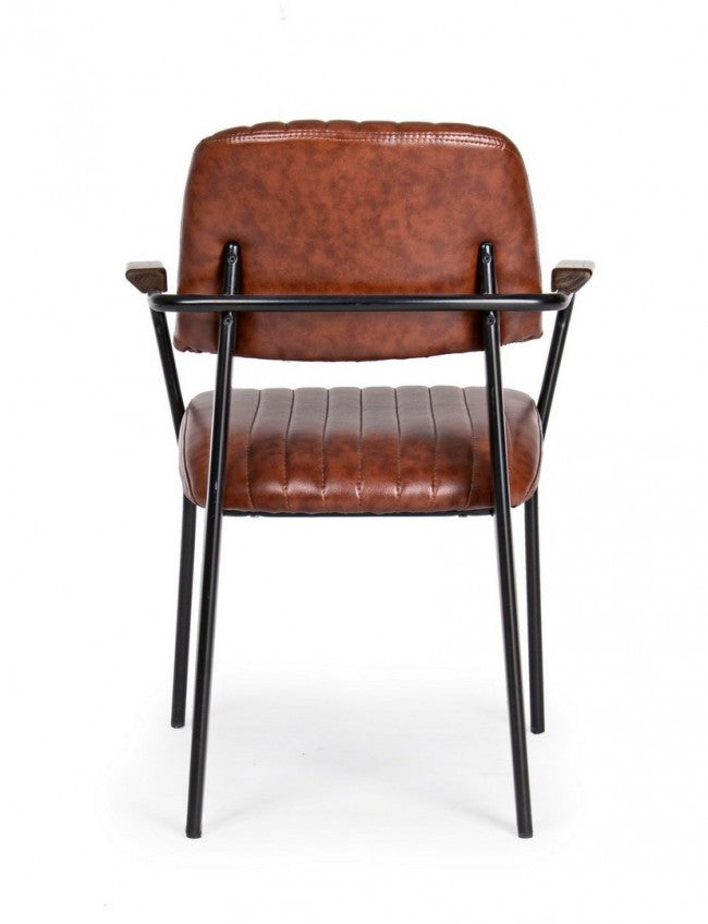 Struttura in acciaio verniciato, rivestimento in similpelle, braccioli con inserti in legno. Imbottitura in schiuma poliuretanica. Da assemblare. Ecopelle.Set 2 Sedie Imbottite 60x63x81 cm Nelly in Ecopelle Arancio Scuro Vintage