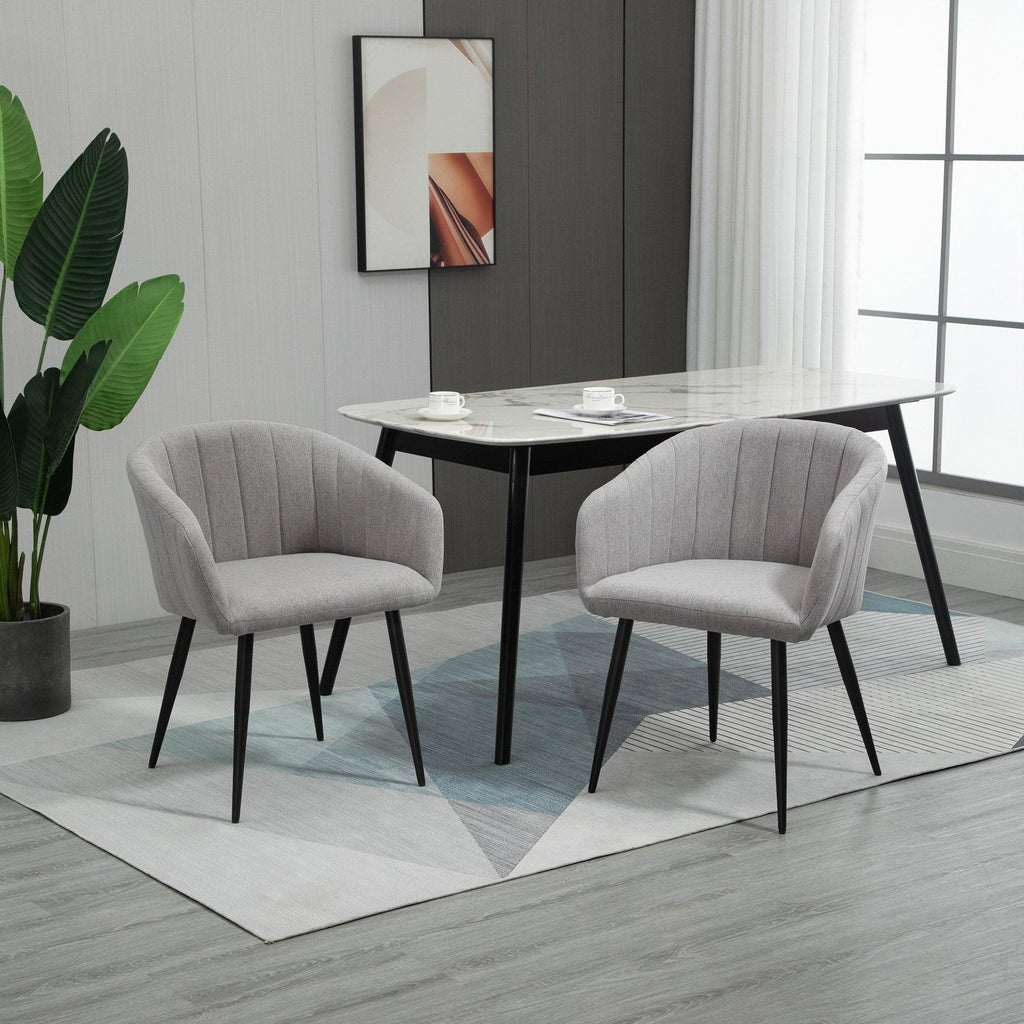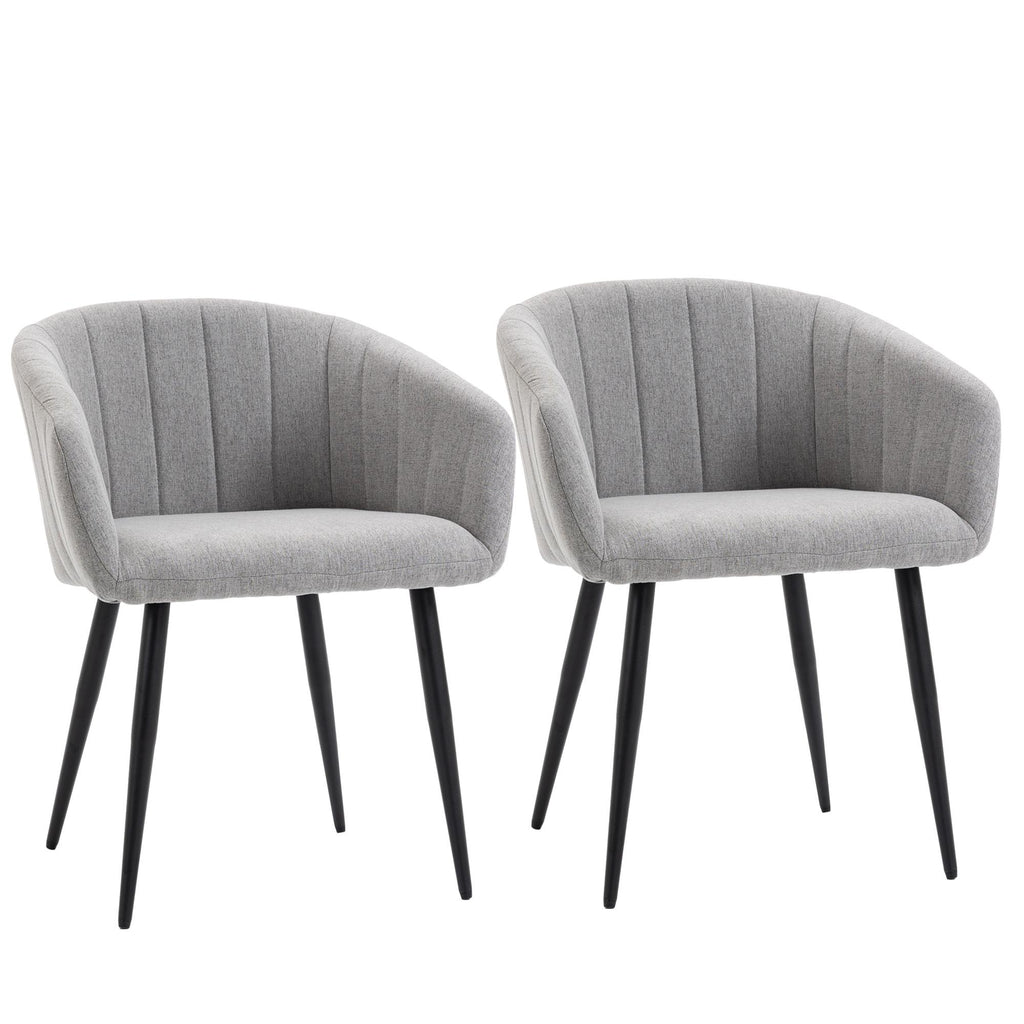 Lot de 2 Chaises Rembourrées 62x56x76 cm en Tissu Effet Lin Gris Clair