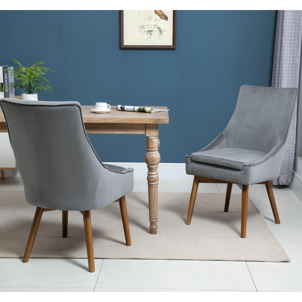 Ensemble de 2 chaises rembourrées en bois et velours gris