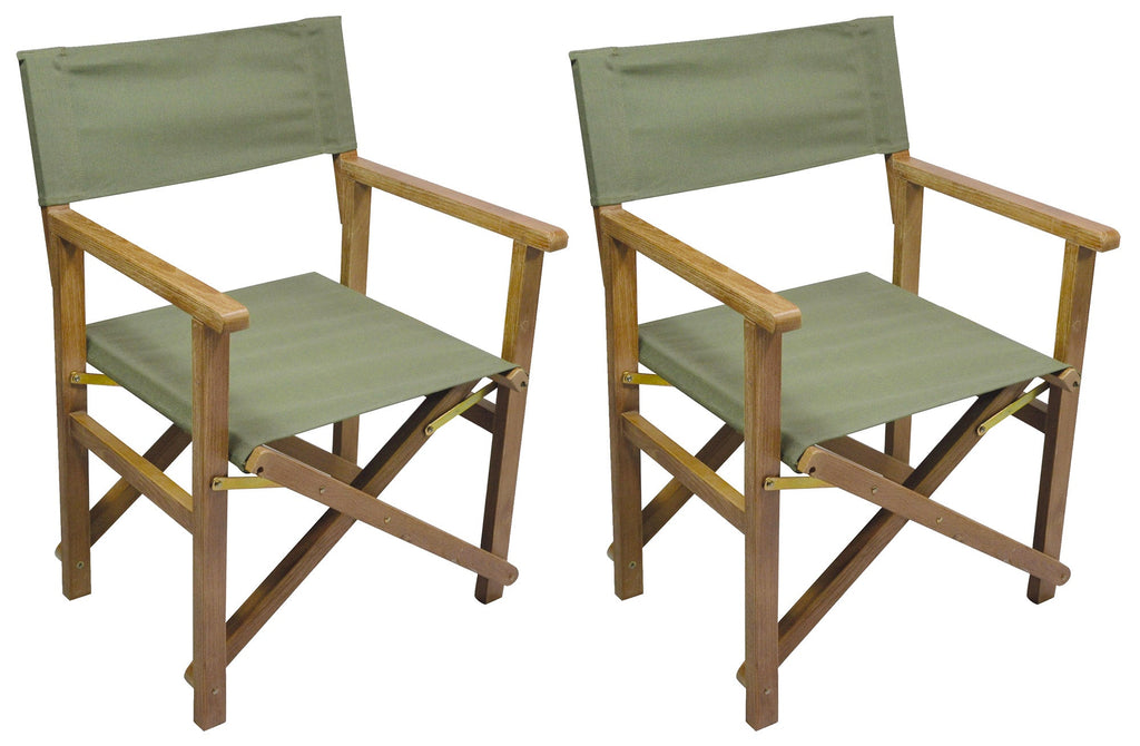 Lot de 2 chaises directeur de jardin 56x52x82 cm en toile robinier et sauge